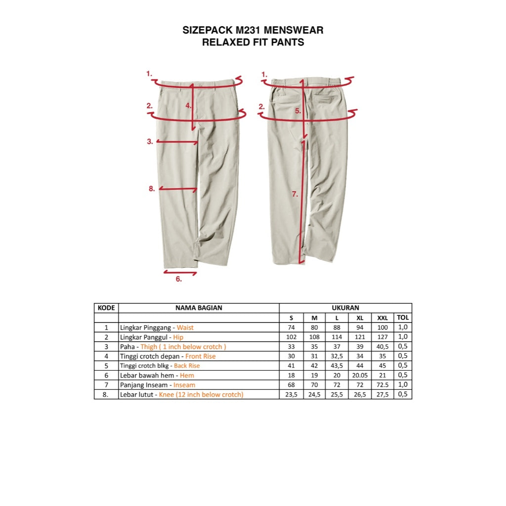 Lingkar Pinggang (cm) x Lingkar Pinggul (cm) x inseam (cm) x Front rise (cm)