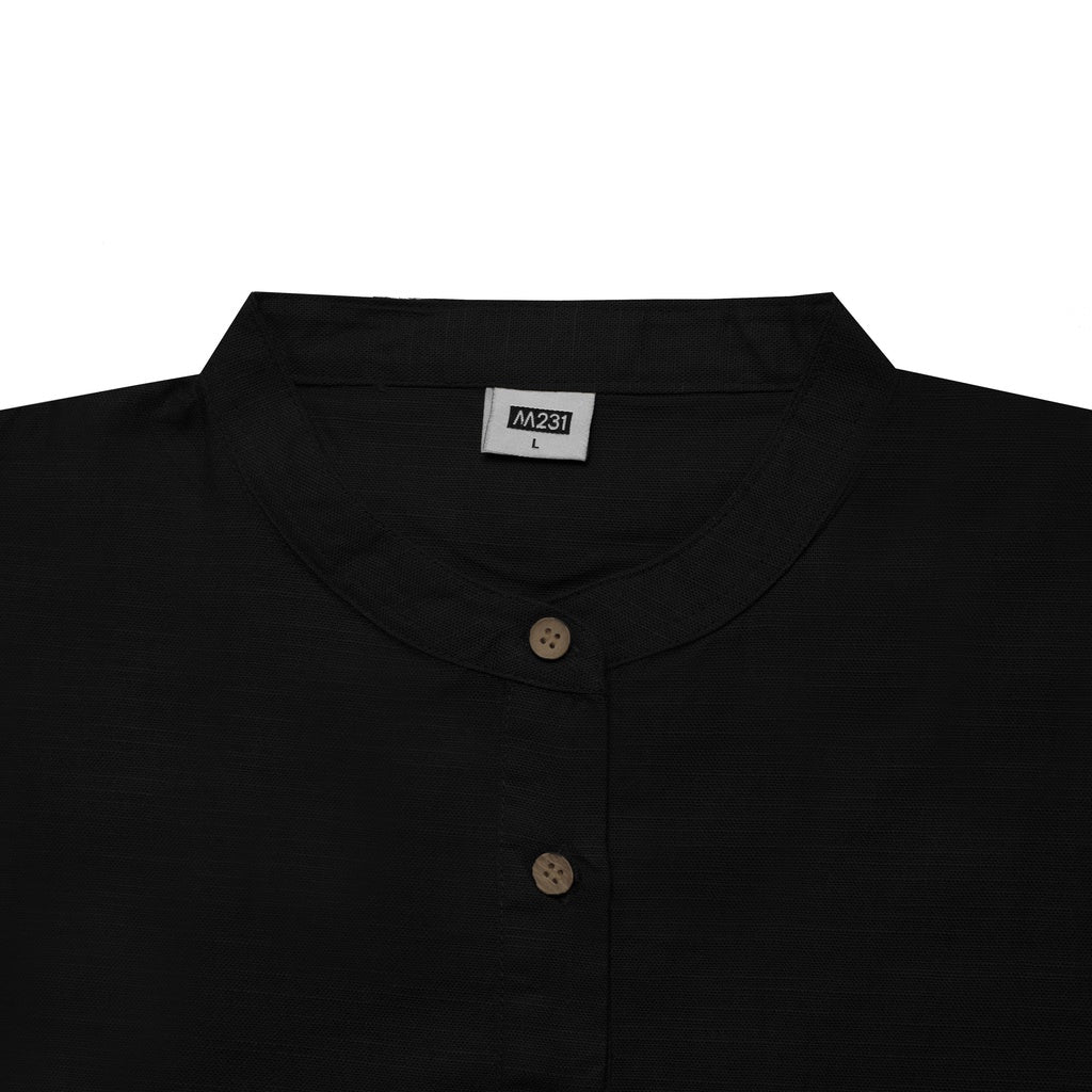 M231 Dress Kemeja Wanita Rami Ikat Pinggang Panjang Hitam 2784D