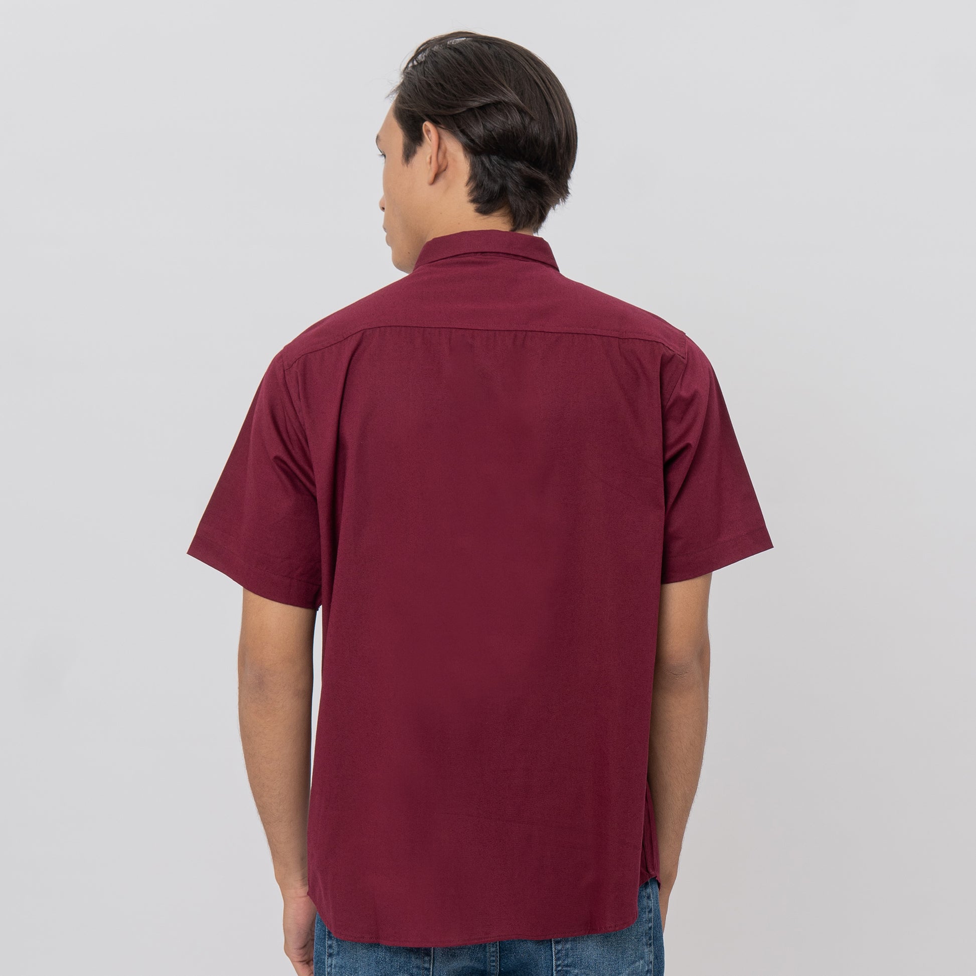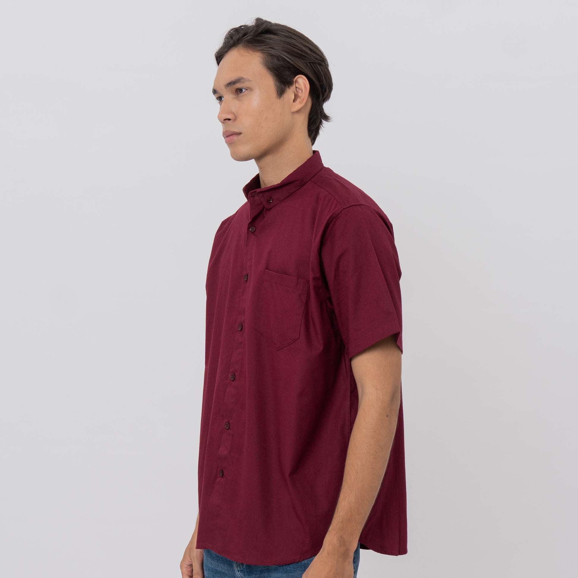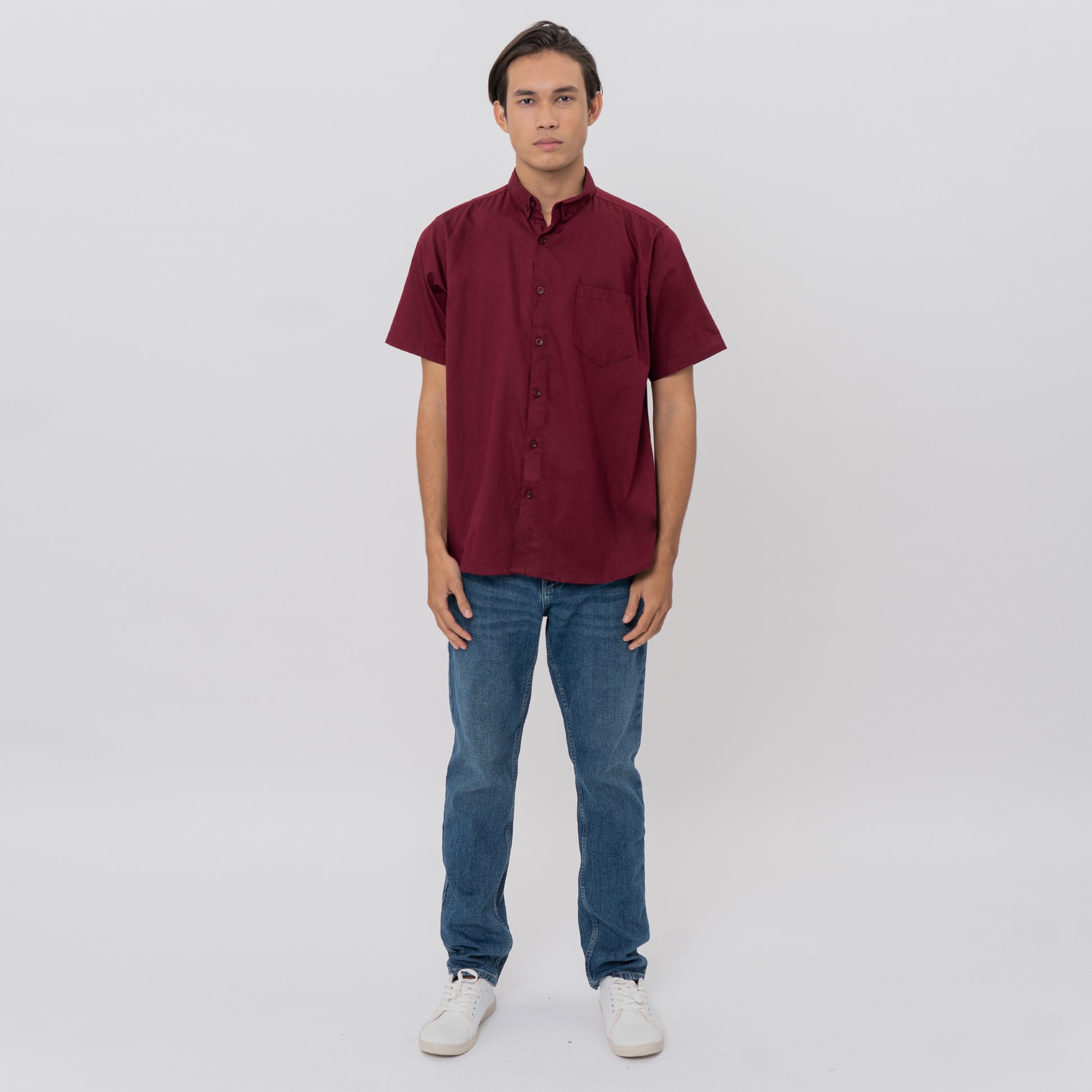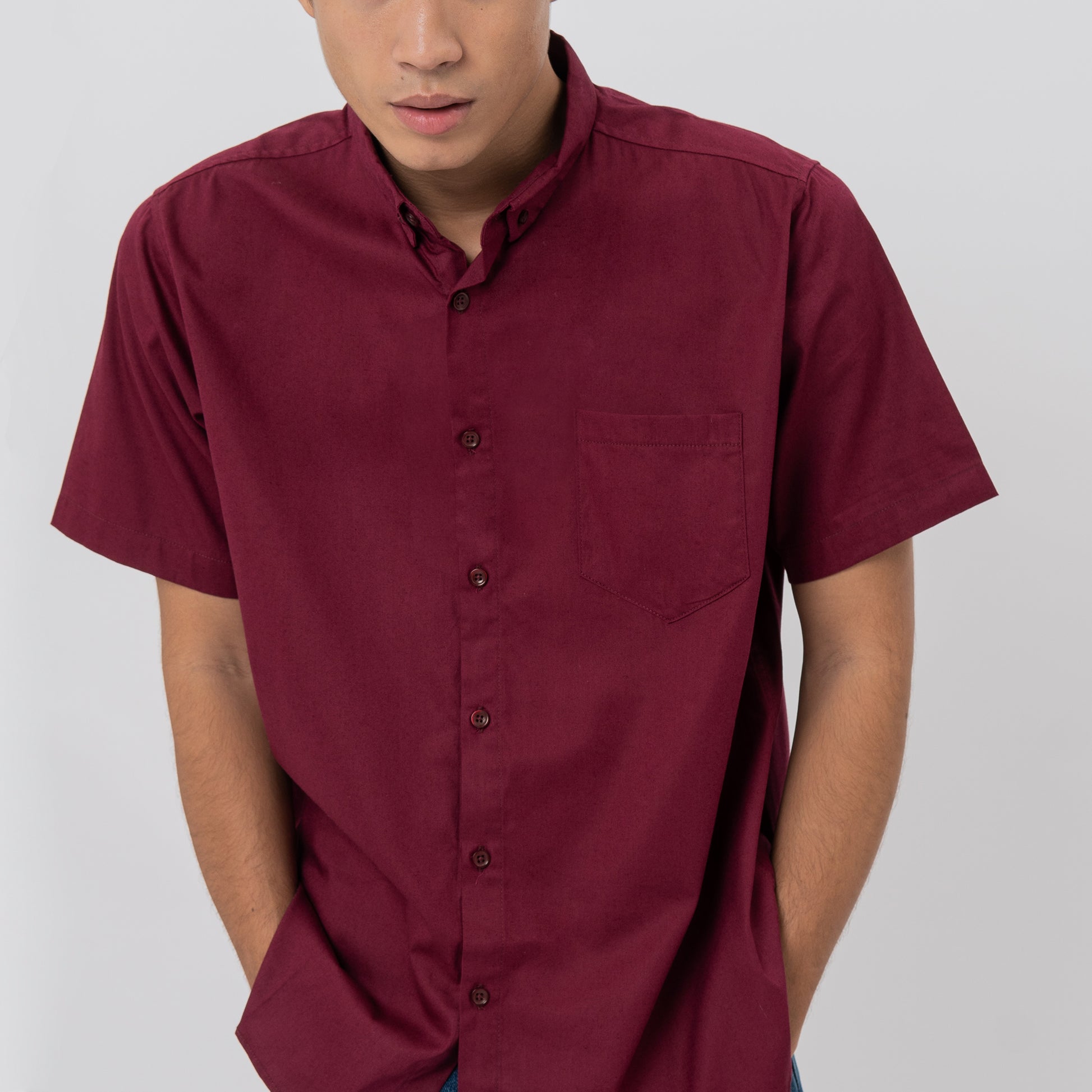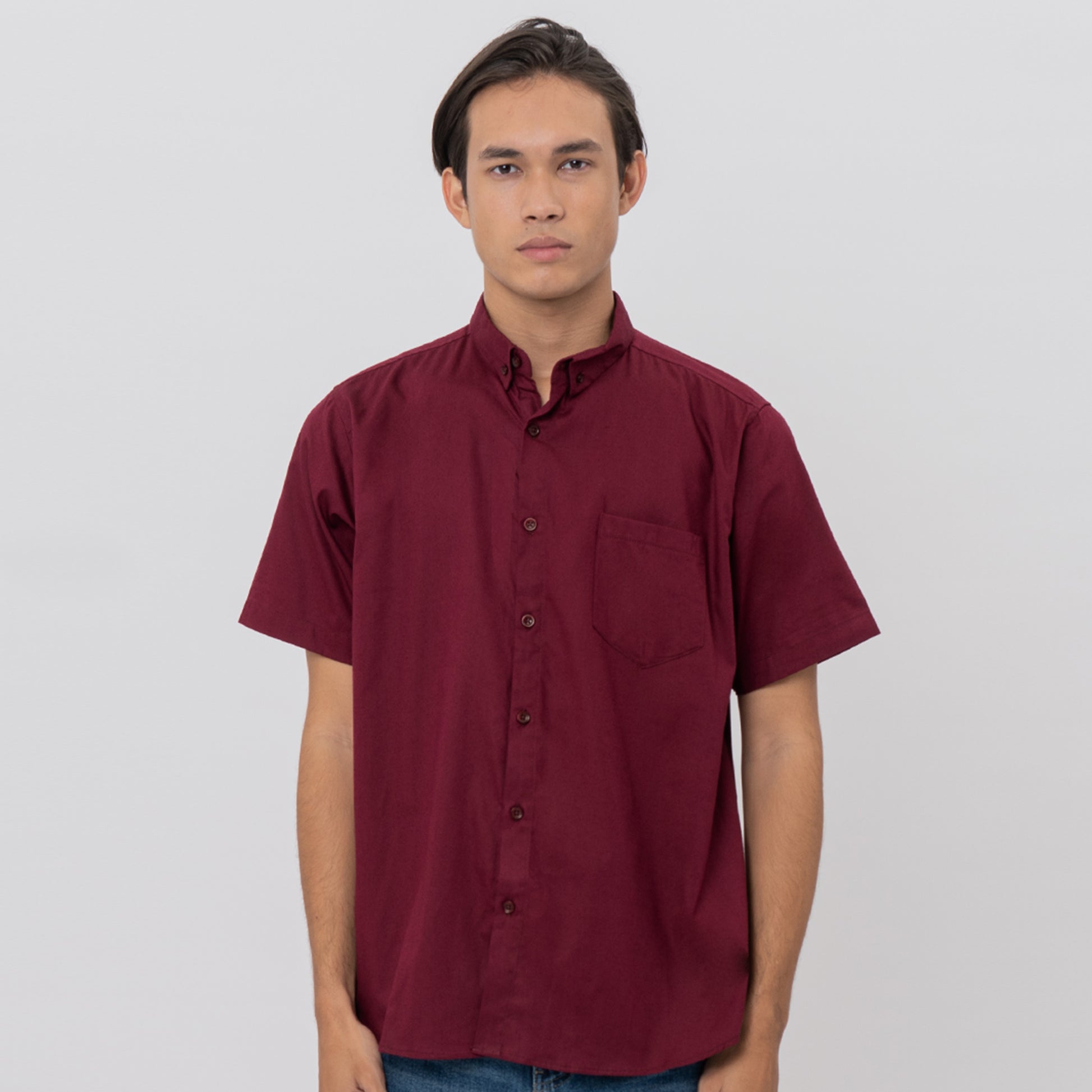 M231 Kemeja Pria Basic Polos Oxford Pendek Maroon 1457C