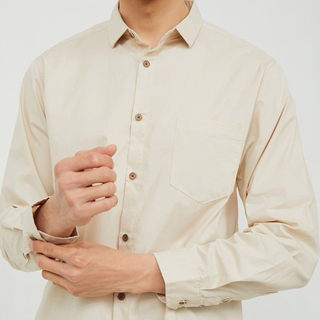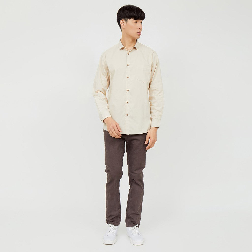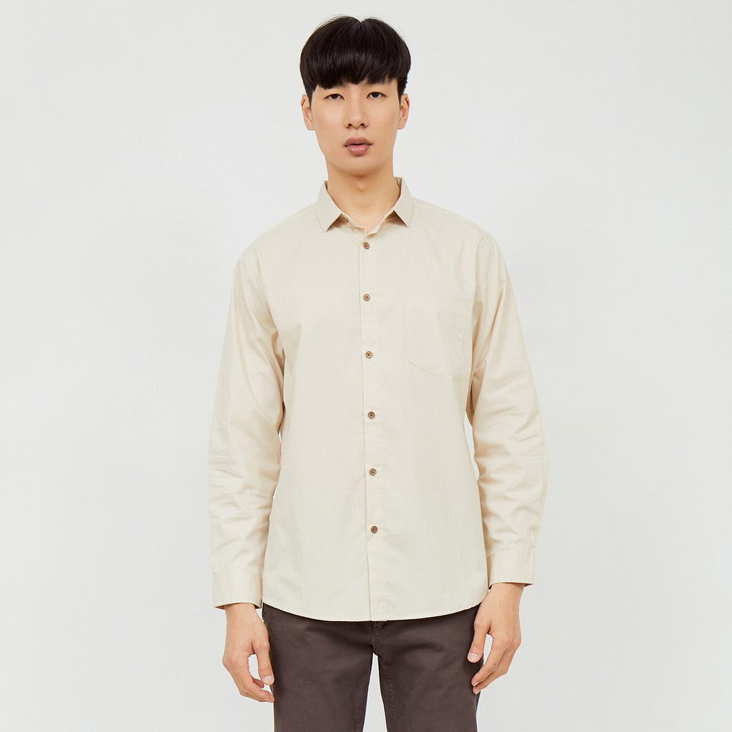 M231 Kemeja Pria Basic Polos Panjang Khaki Muda 1468P