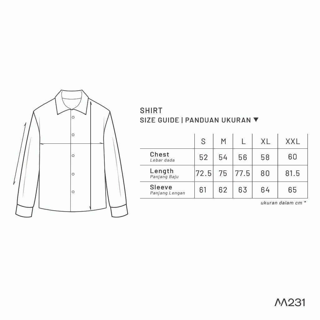 Lebar Dada (cm) x Panjang Kemeja (cm):