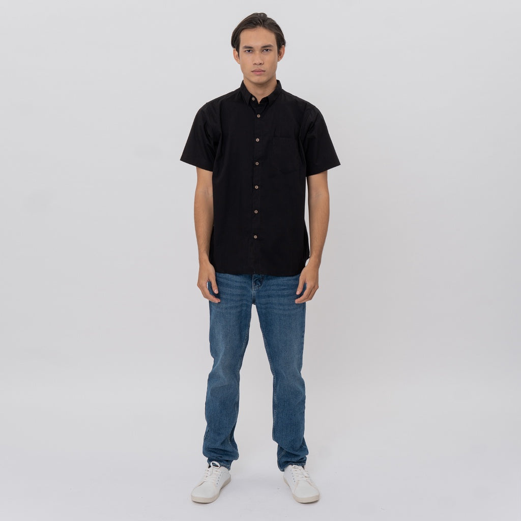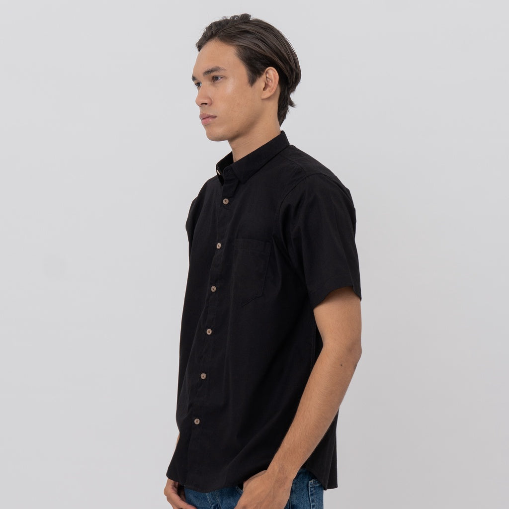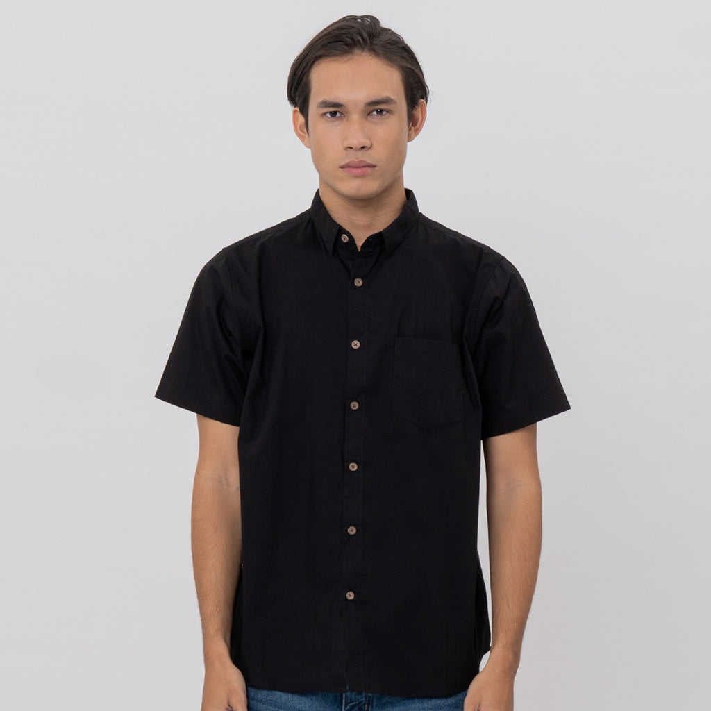 M231 Kemeja Pria Basic Polos Pendek Hitam 2132K