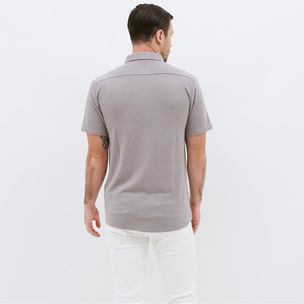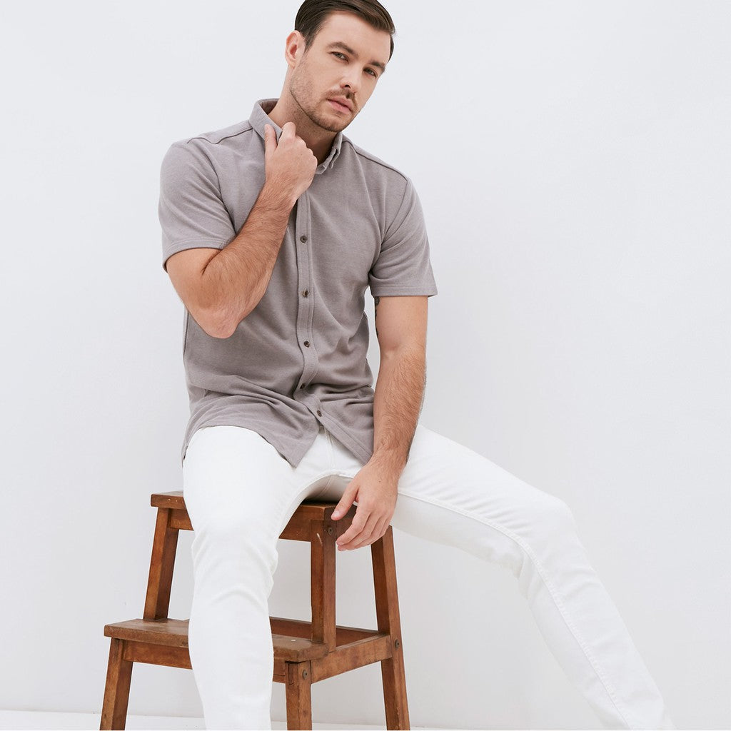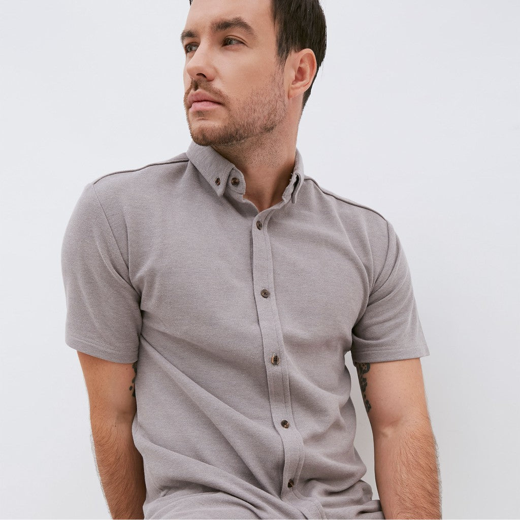 M231 Kemeja Pria Cotton Pique Pendek Warna Abu 1793C