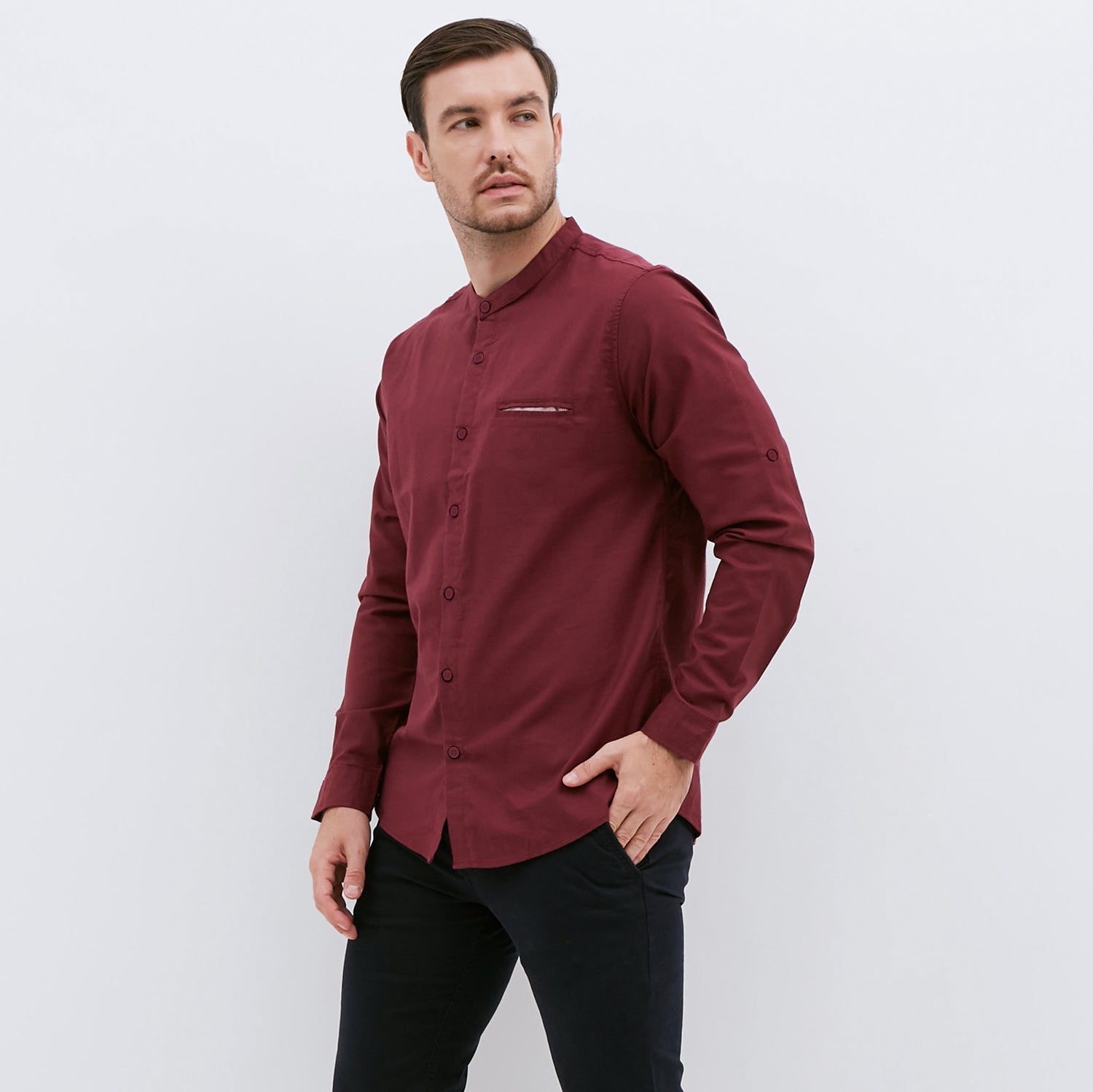 M231 Kemeja Pria Shanghai Polos Oxford Panjang Maroon 1552B