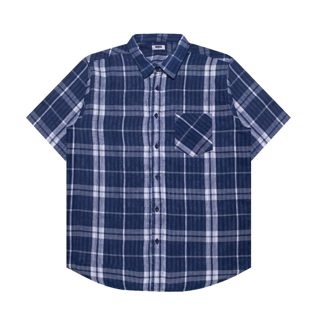 M231 Kemeja Pria Yarn Dyed Double Face Kotak Pendek Navy 3068